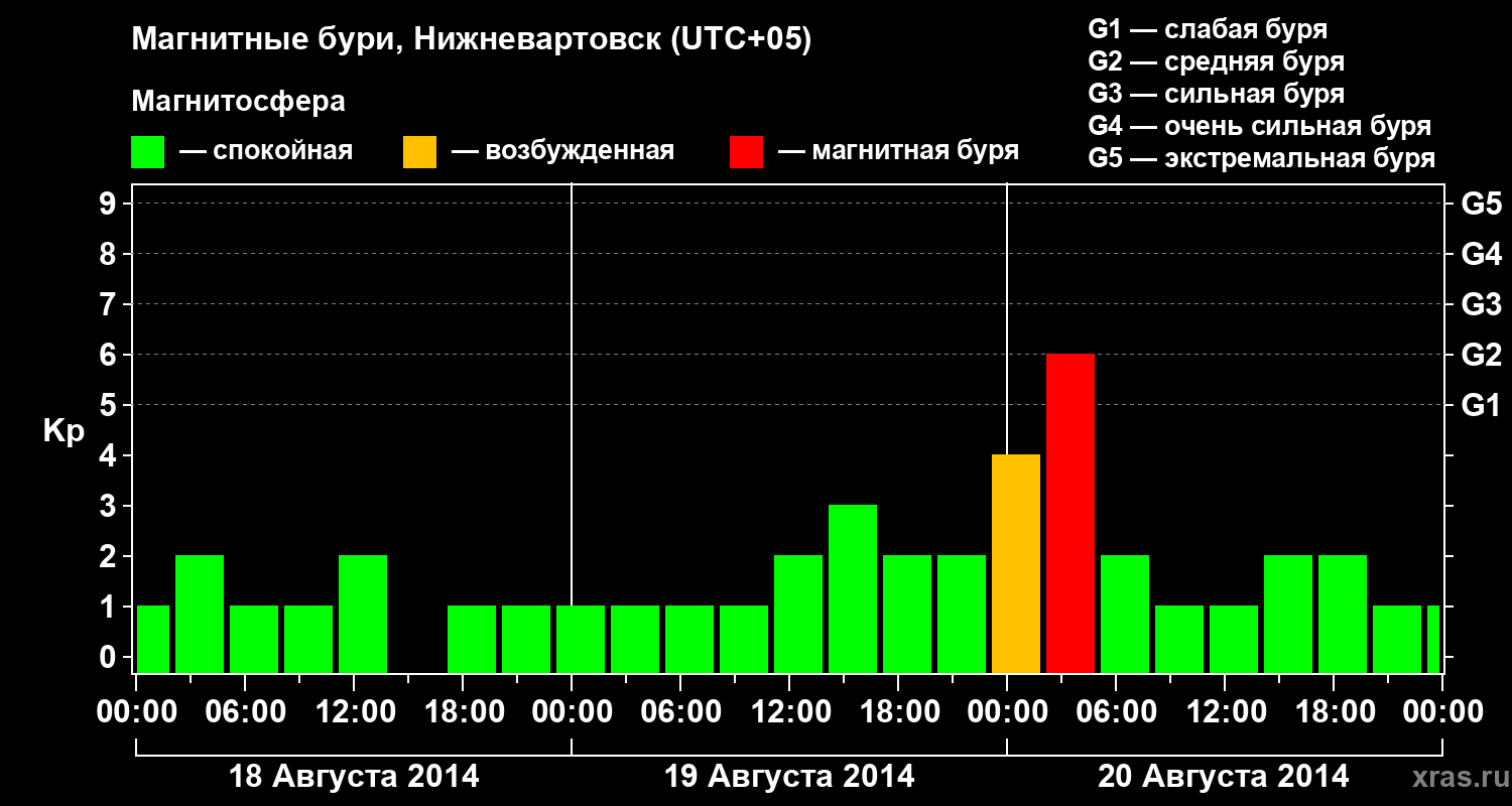 Магнитные бури в Нижневартовске 20 августа 2014 года