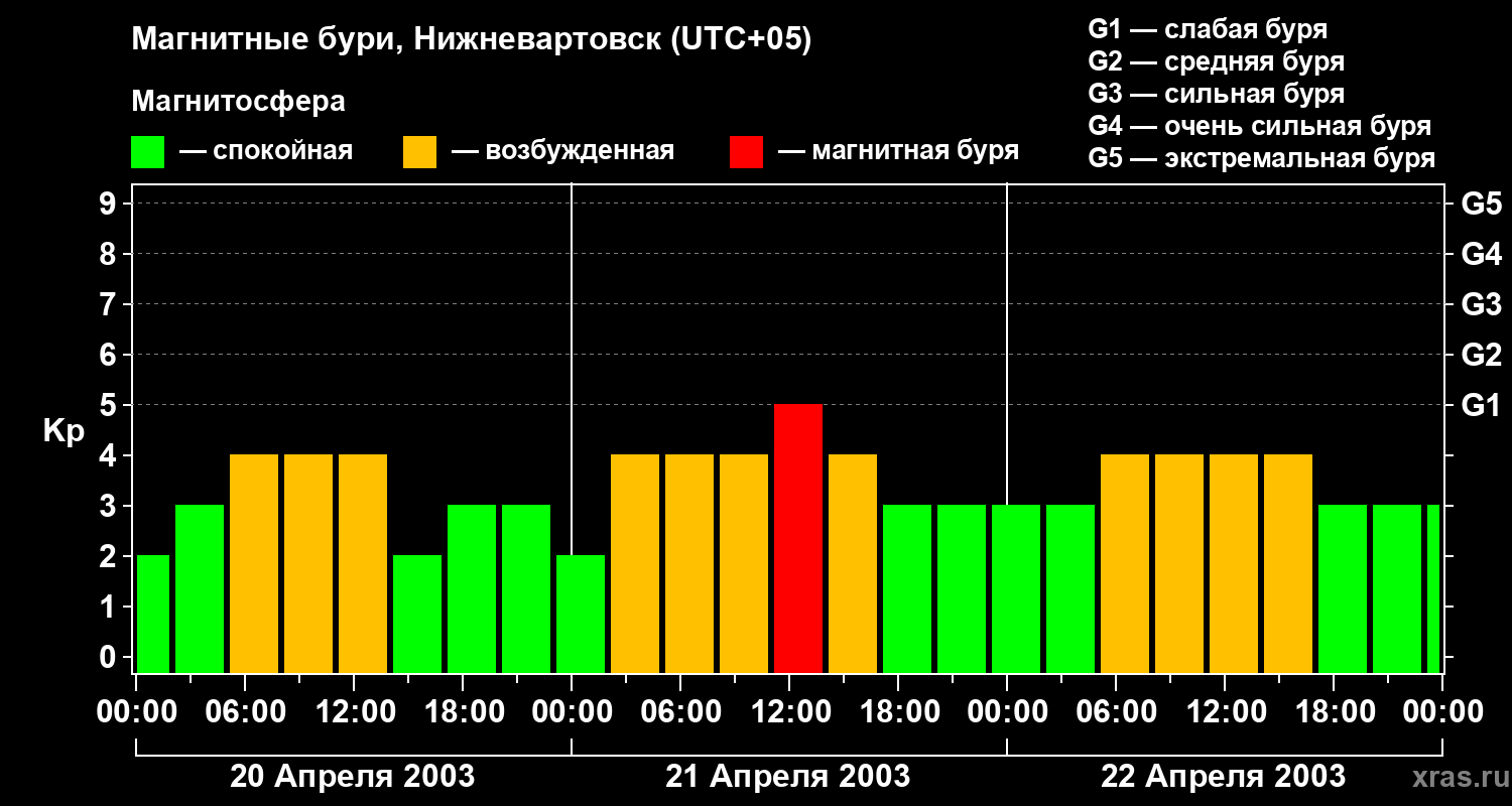 Магнитные бури в Нижневартовске — 22 апреля 2003 года