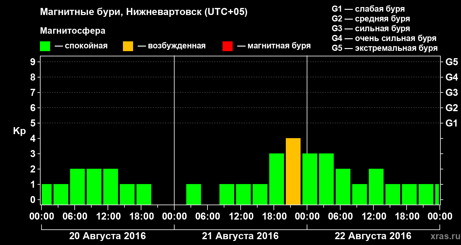 Магнитные бури в Нижневартовске 22 августа 2016 года