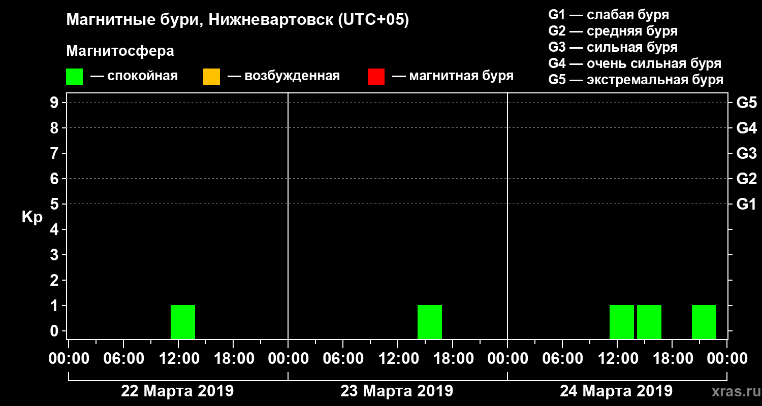 Магнитные бури в Нижневартовске 24 марта 2019 года