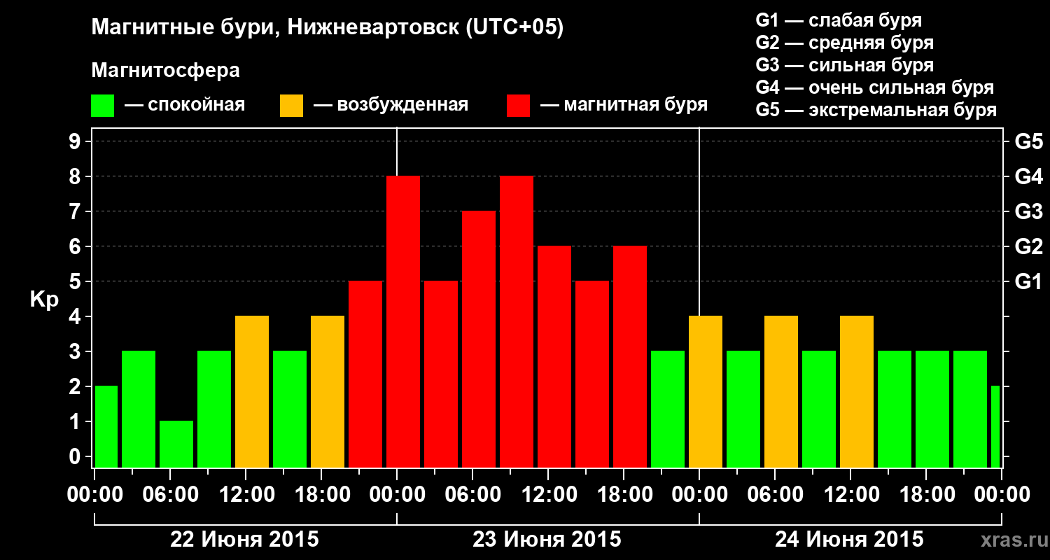 Магнитные бури в Нижневартовске 24 июня 2015 года
