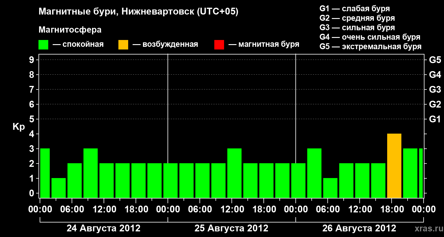 Магнитные бури в Нижневартовске 26 августа 2012 года