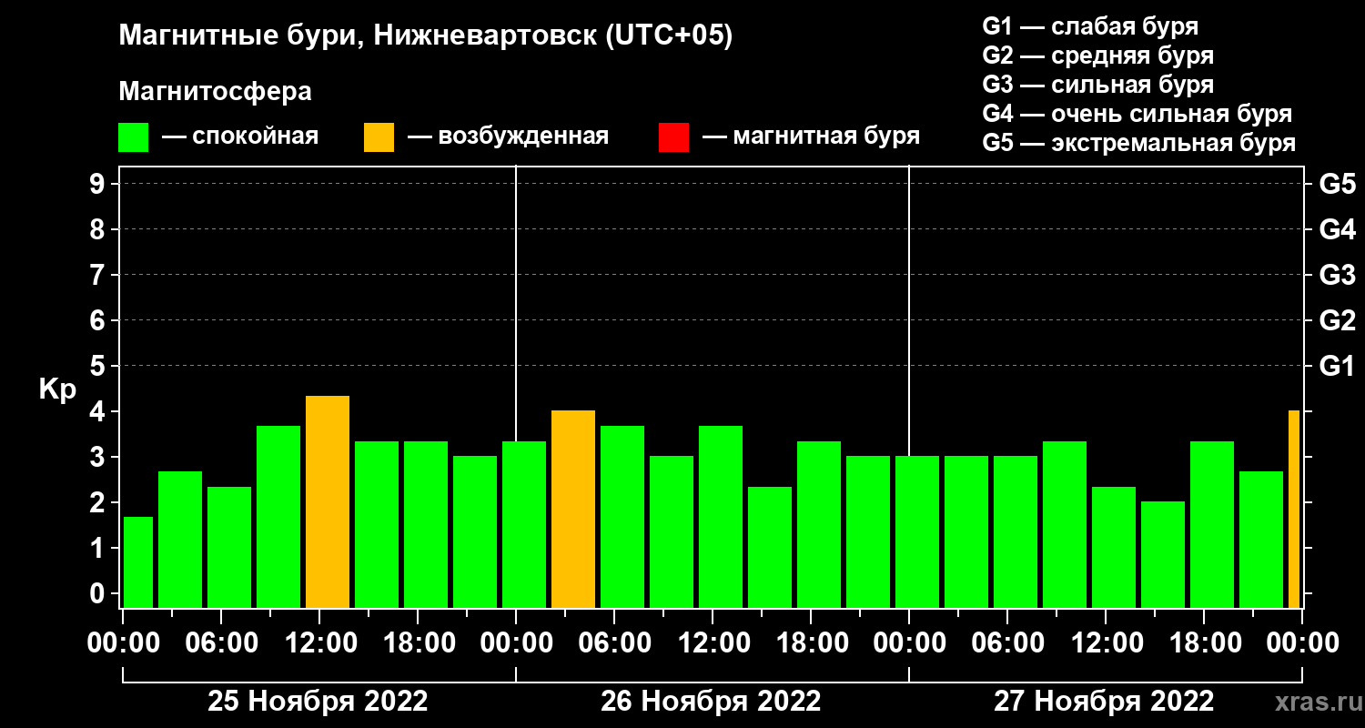 Магнитные бури в Нижневартовске 27 ноября 2022 года