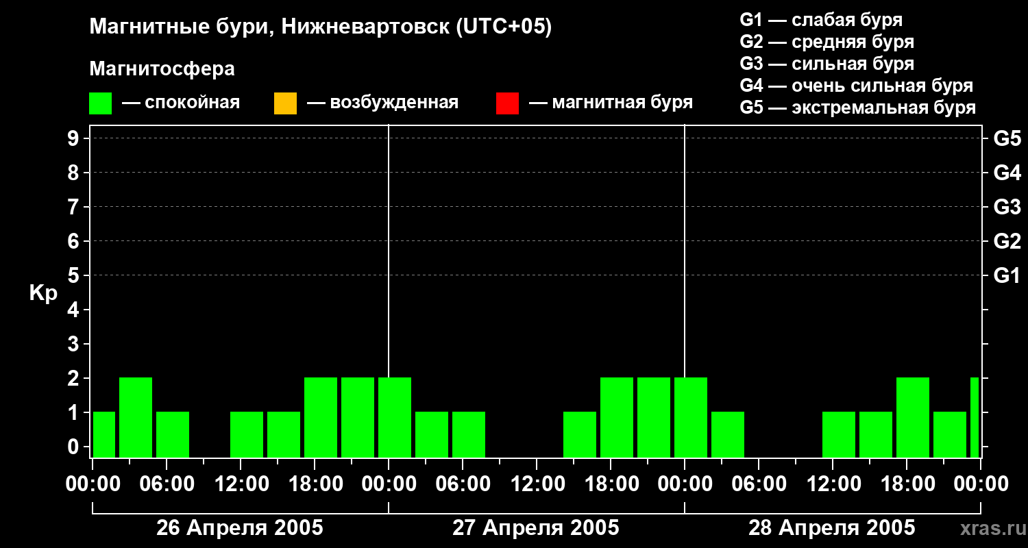 Магнитные бури в Нижневартовске — 28 апреля 2005 года