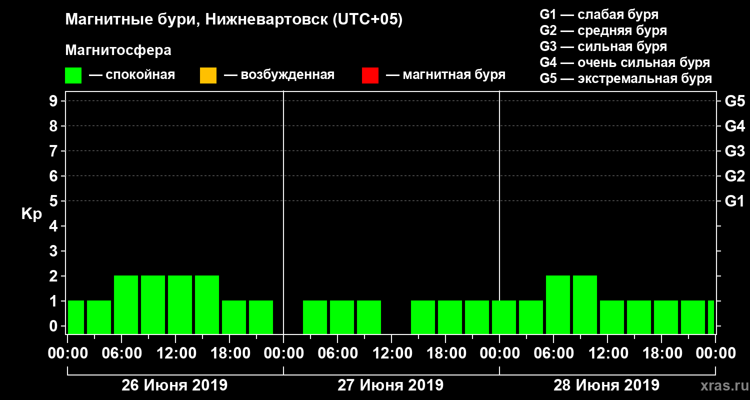 Магнитные бури в Нижневартовске 28 июня 2019 года