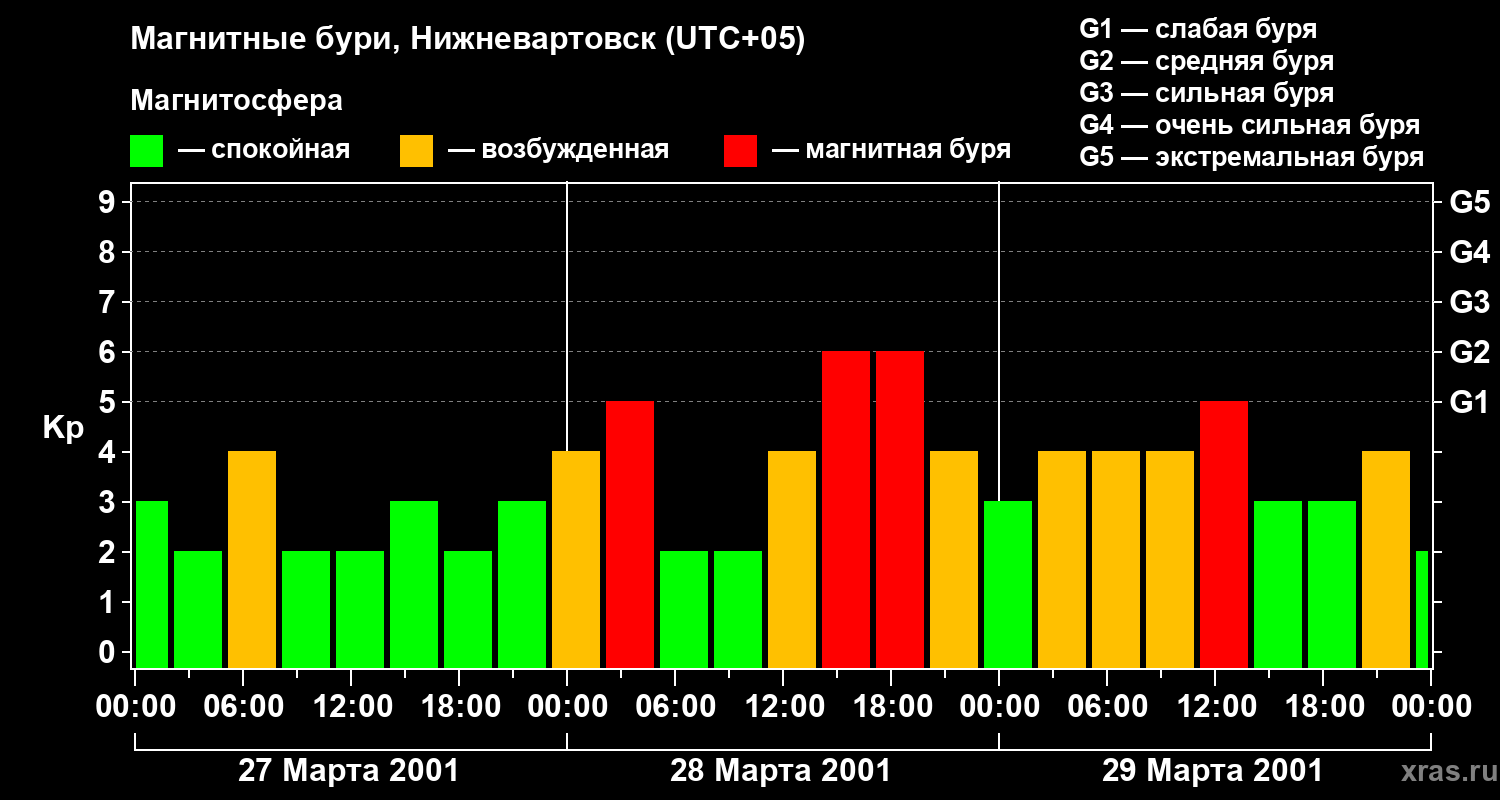 Магнитные бури в Нижневартовске — 29 марта 2001 года