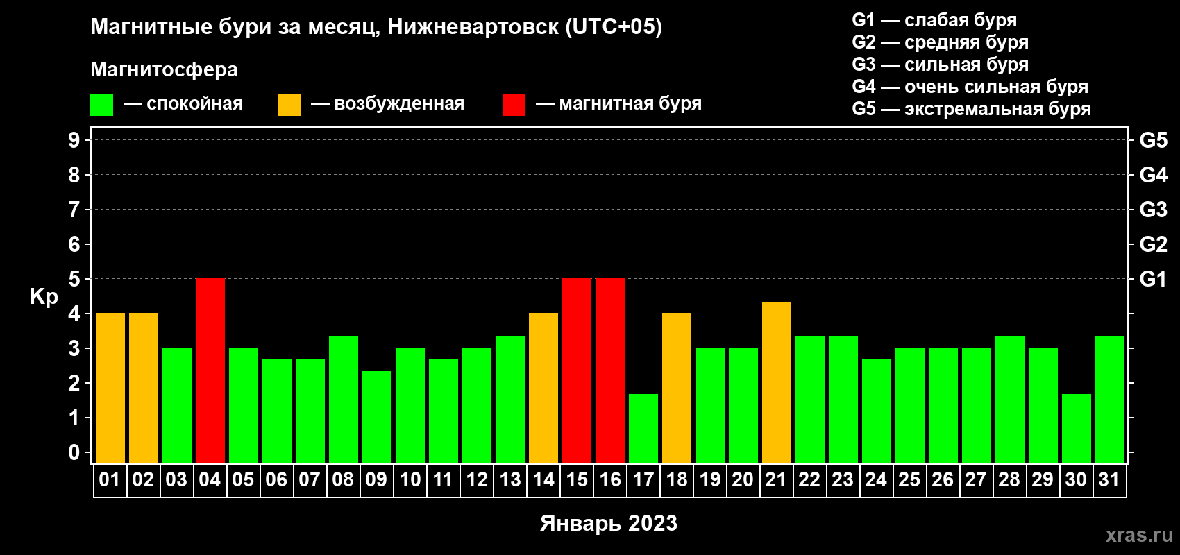 Магнитные бури в Нижневартовске — 31 января 2023 года