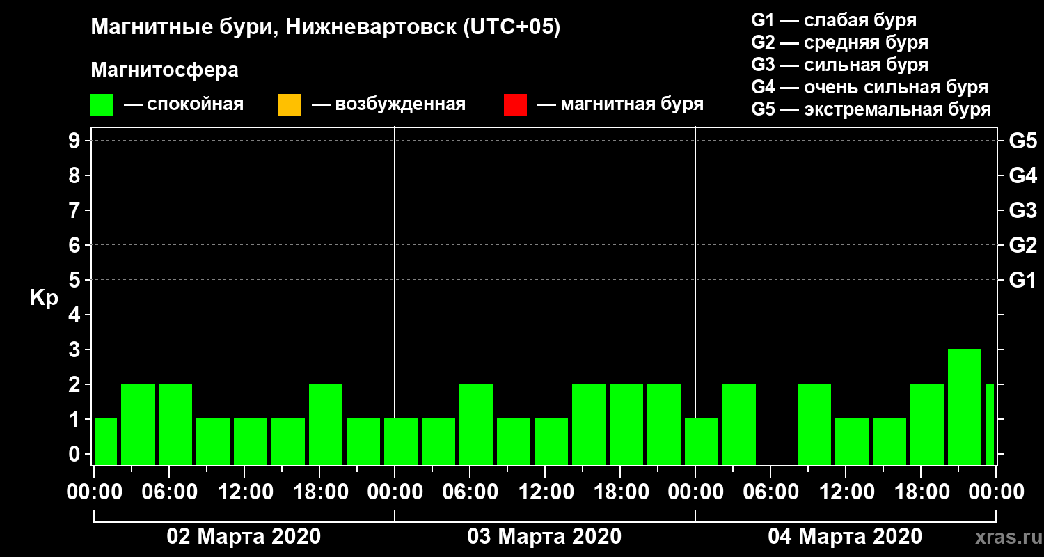 Магнитные бури в Нижневартовске — 4 марта 2020 года