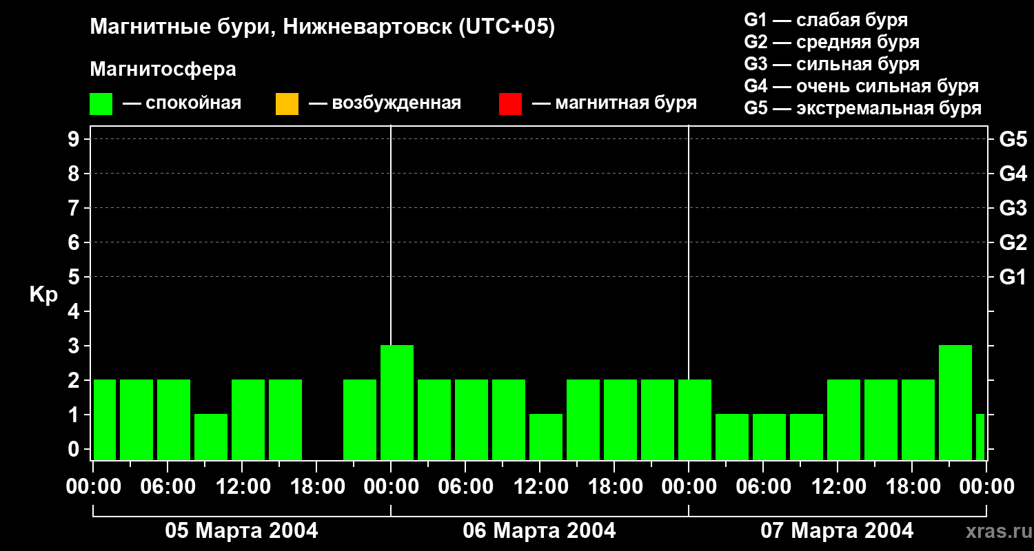 Магнитные бури в Нижневартовске — 7 марта 2004 года