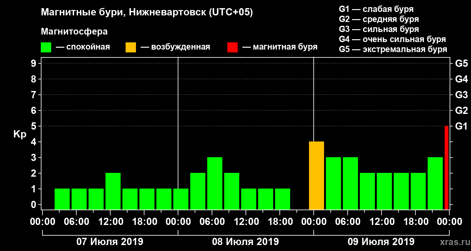 Магнитные бури в Нижневартовске — 9 июля 2019 года