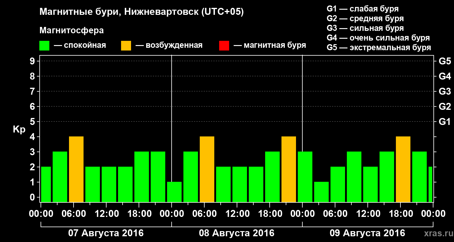 Магнитные бури в Нижневартовске — 9 августа 2016 года