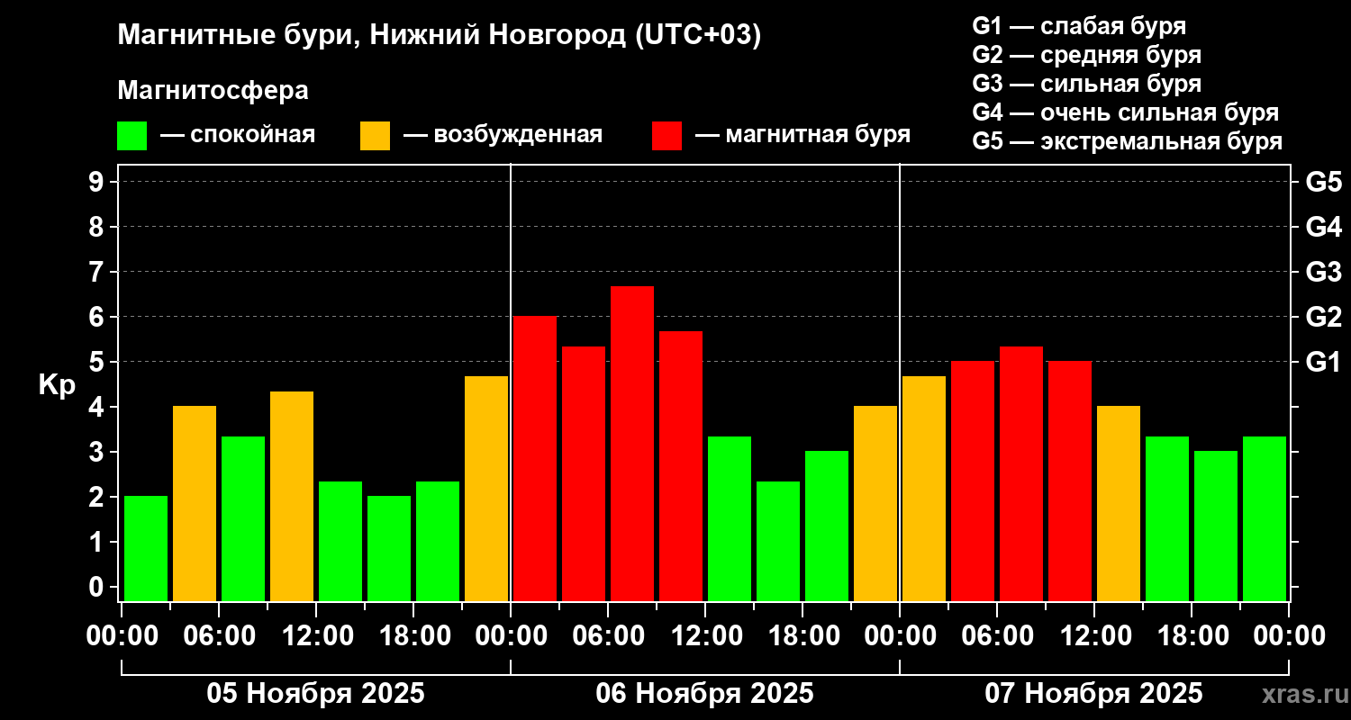 Магнитные бури Нижнем Новгороде — 7 ноября 2025 года