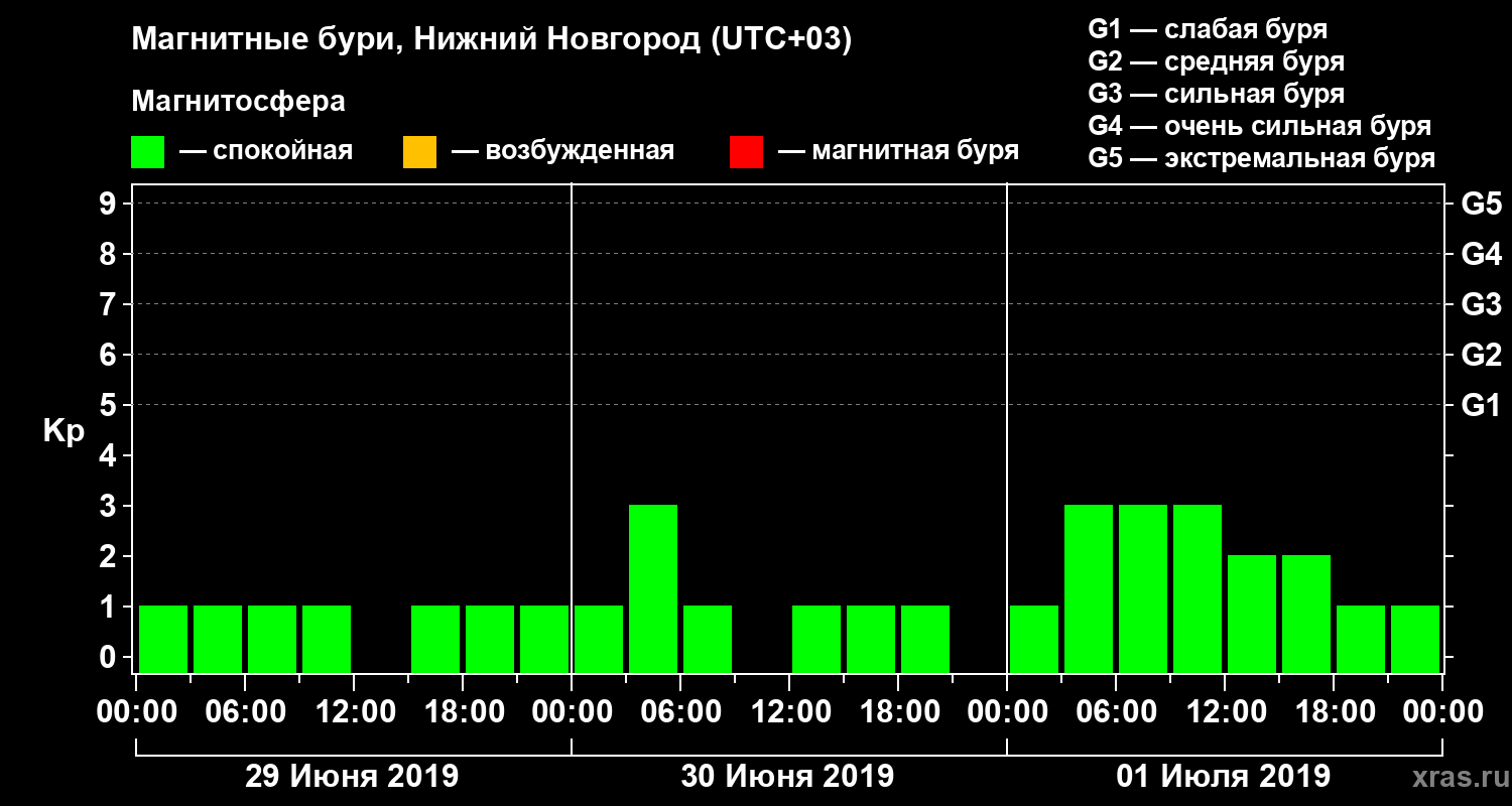 Магнитные бури Нижнем Новгороде 1 июля 2019 года