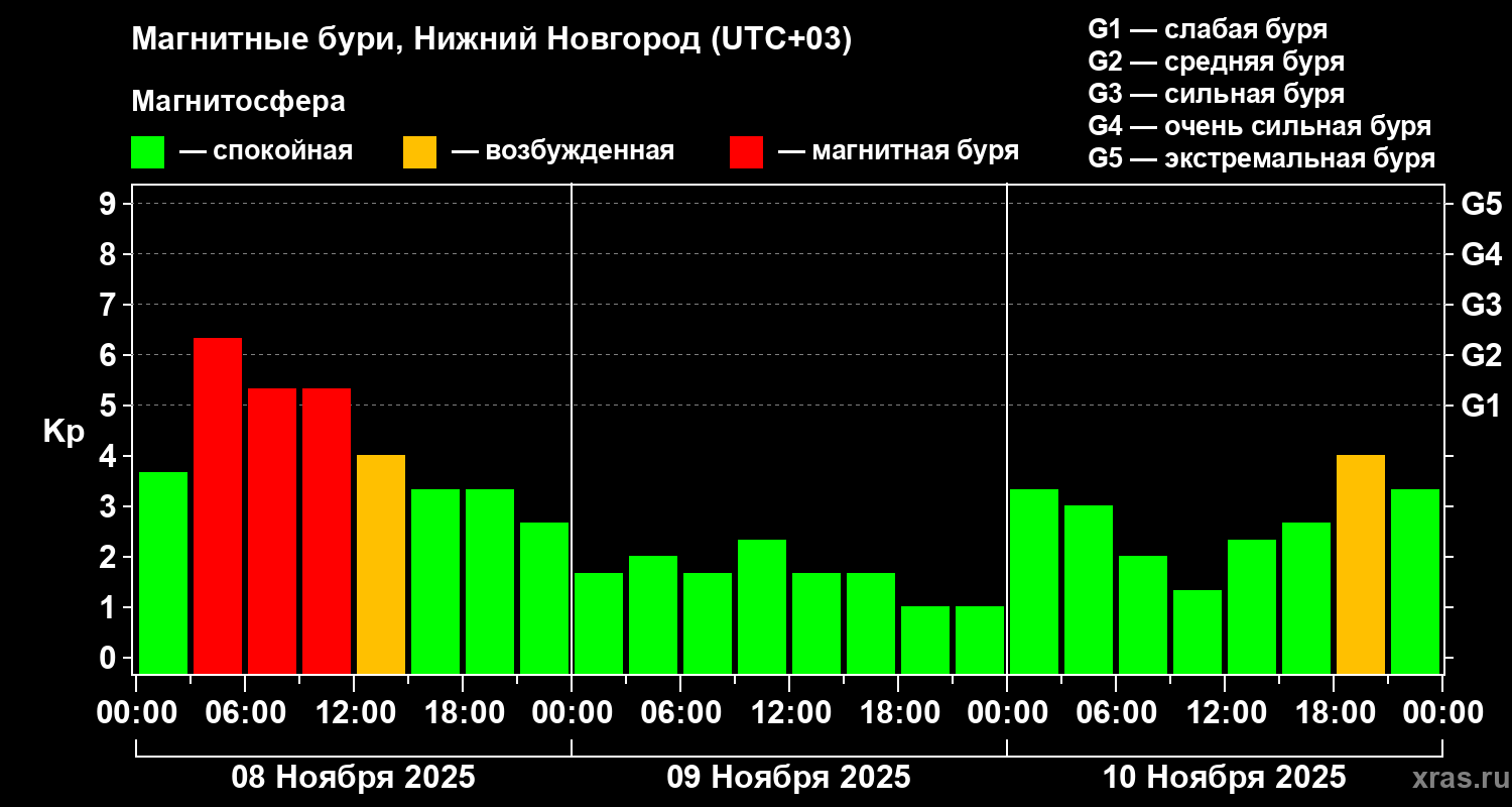 Магнитные бури Нижнем Новгороде — 10 ноября 2025 года