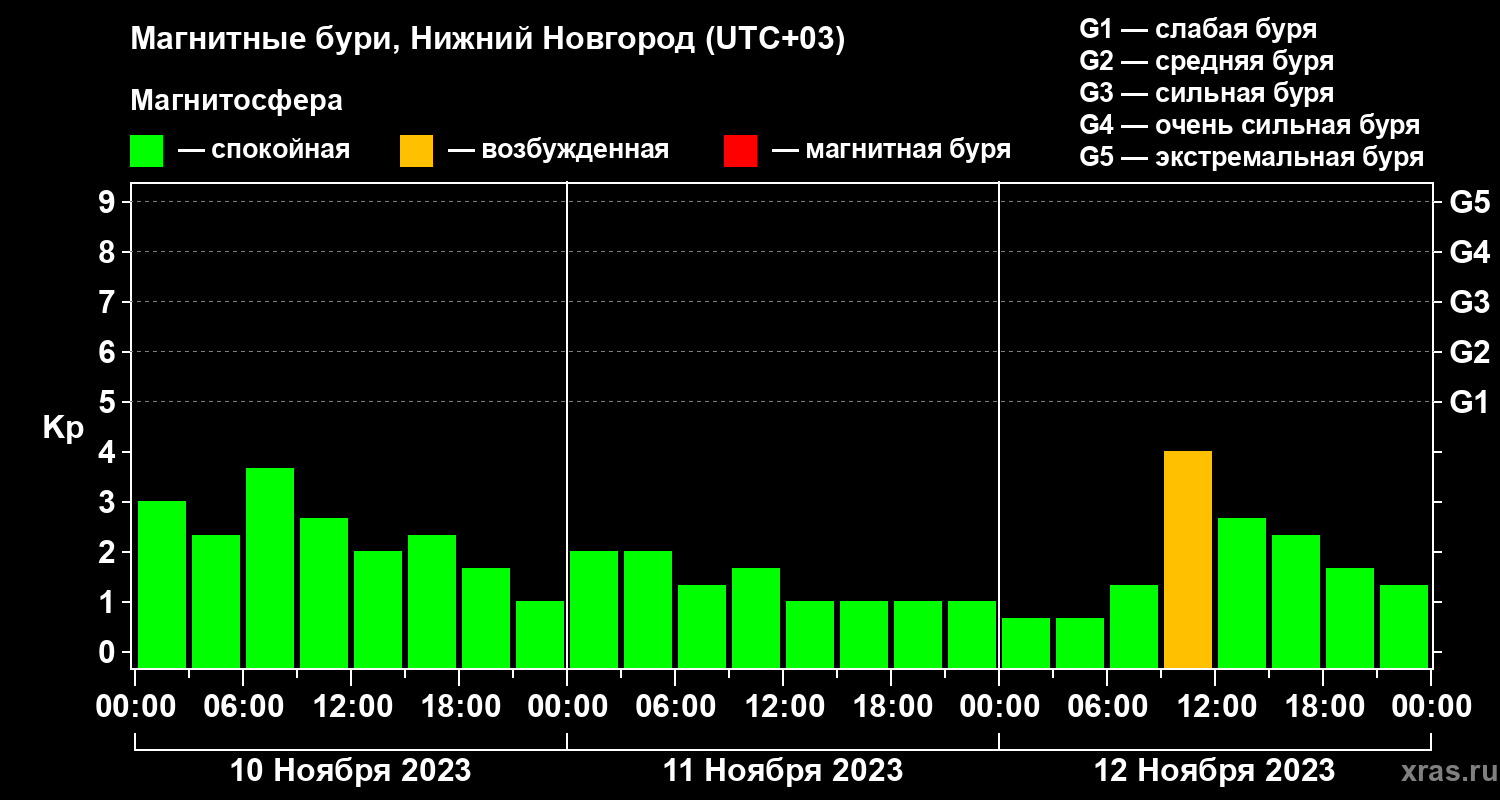 Магнитные бури Нижнем Новгороде — 12 ноября 2023 года