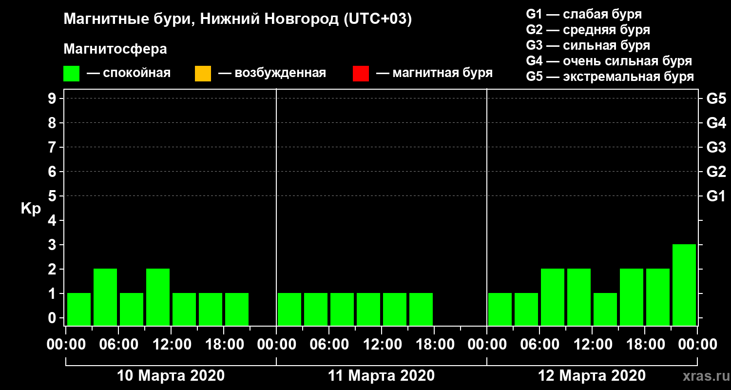 Магнитные бури Нижнем Новгороде 12 марта 2020 года