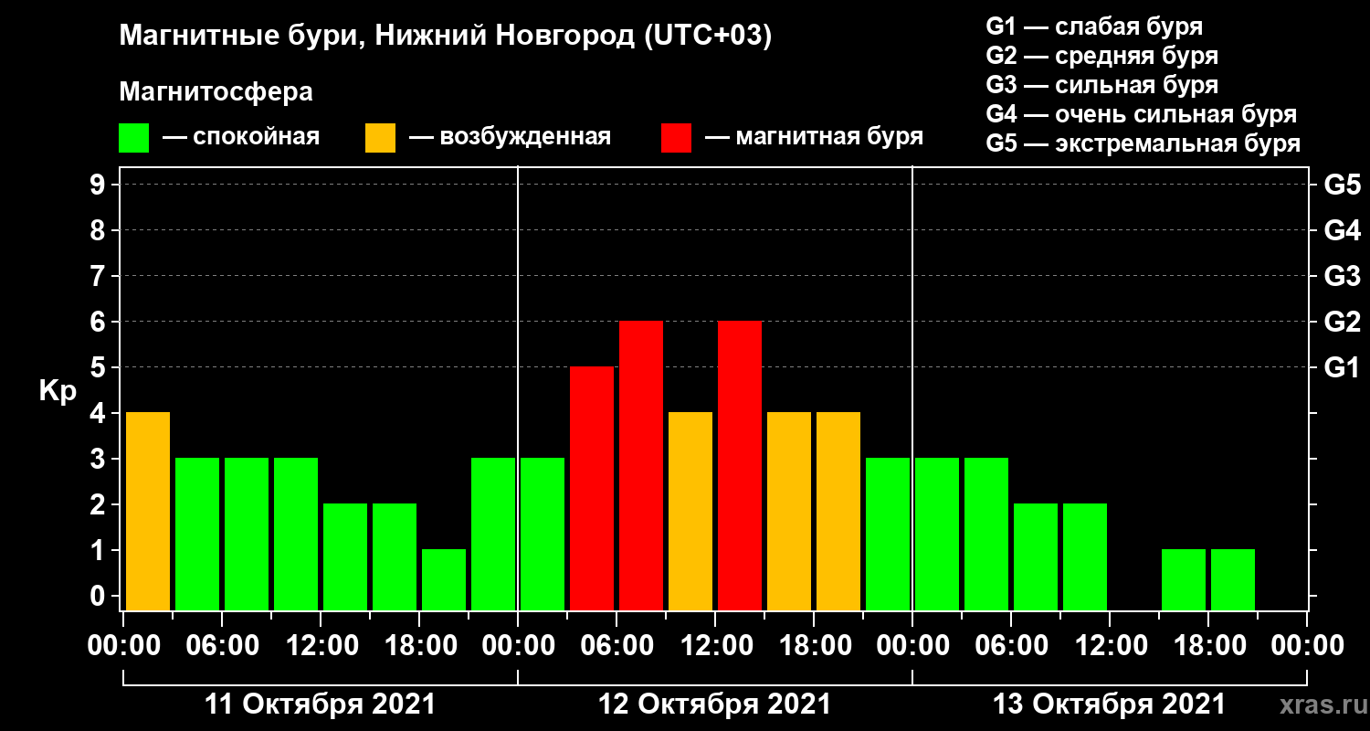 Магнитные бури Нижнем Новгороде — 13 октября 2021 года