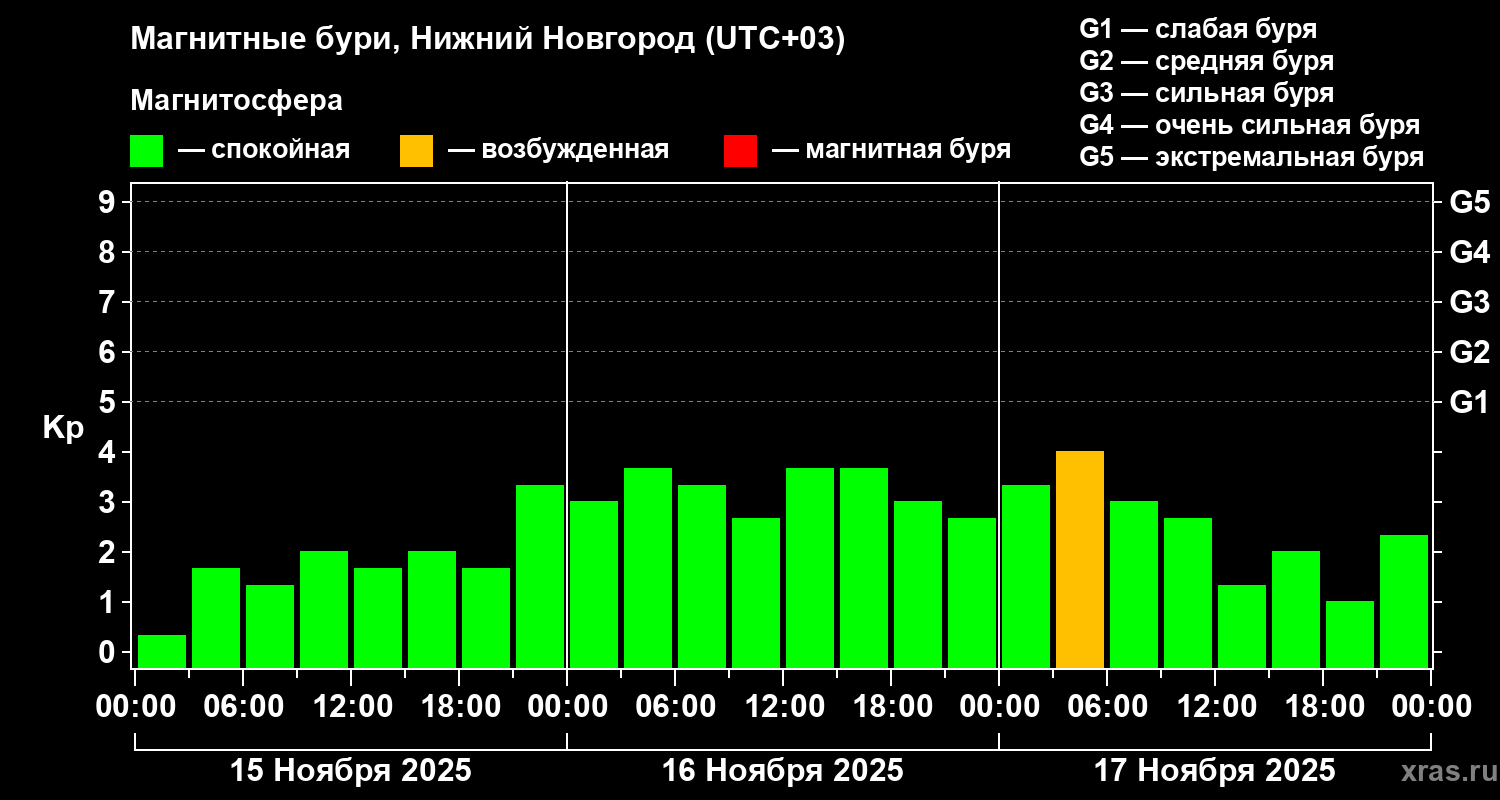 Магнитные бури Нижнем Новгороде — 17 ноября 2025 года