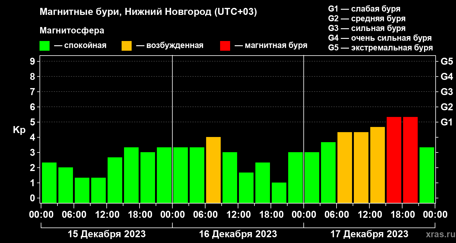 Магнитные бури Нижнем Новгороде 17 декабря 2023 года