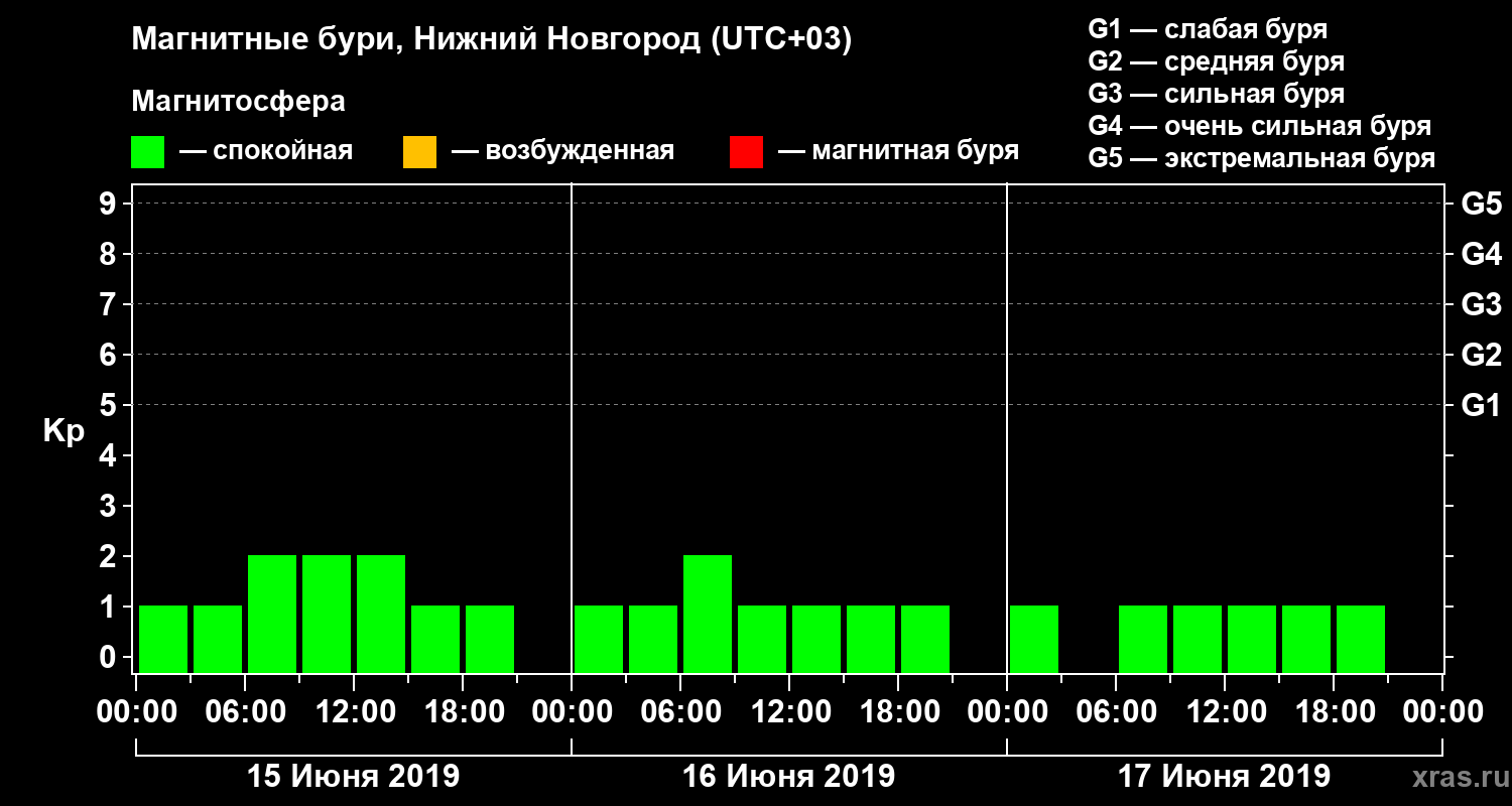 Магнитные бури Нижнем Новгороде 17 июня 2019 года