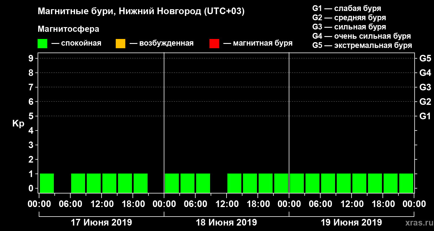Магнитные бури Нижнем Новгороде 19 июня 2019 года