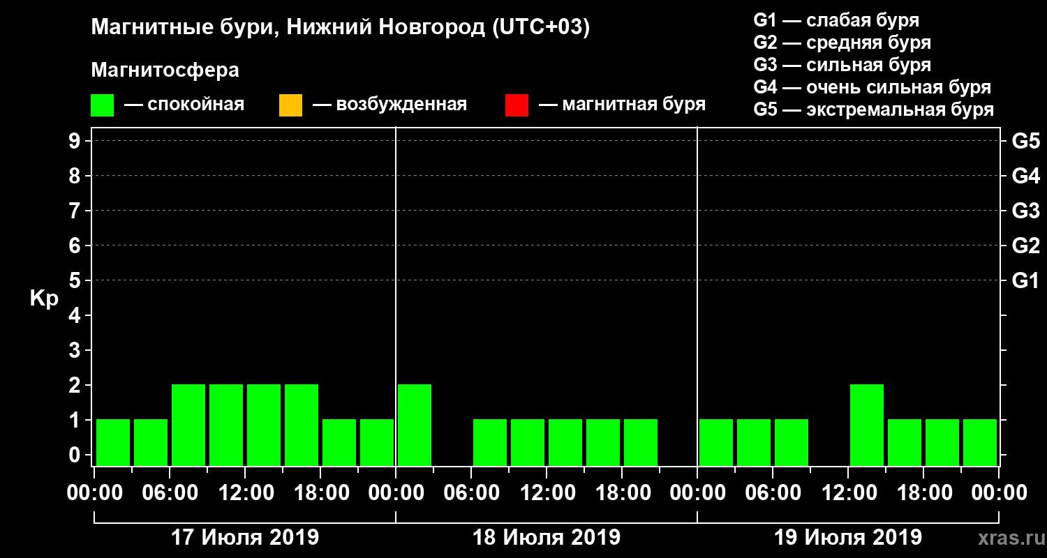 Магнитные бури Нижнем Новгороде 19 июля 2019 года