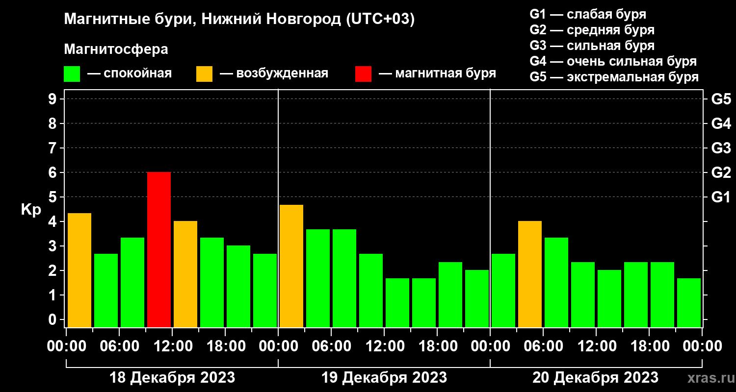 Магнитные бури Нижнем Новгороде — 20 декабря 2023 года