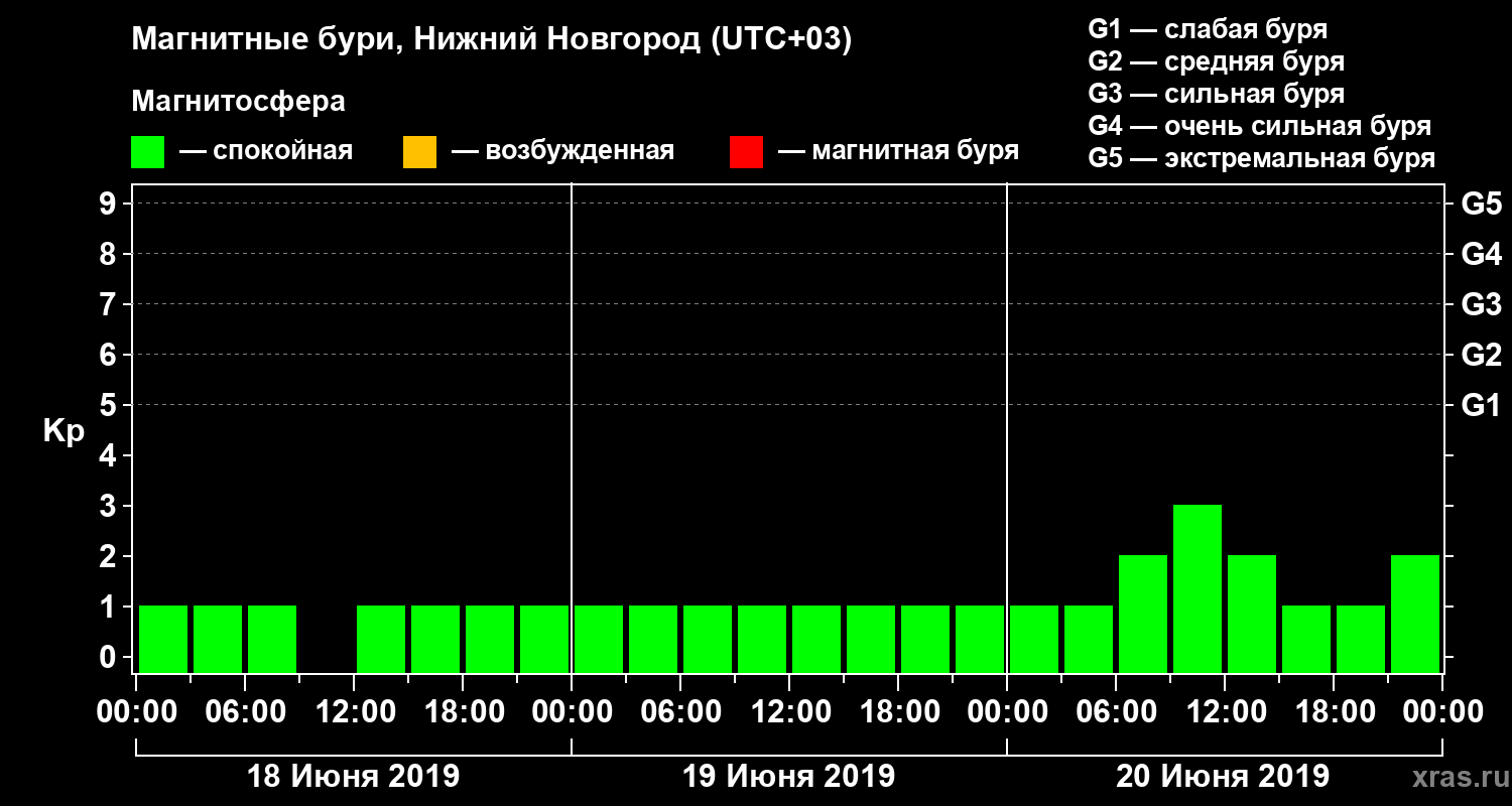 Магнитные бури Нижнем Новгороде 20 июня 2019 года