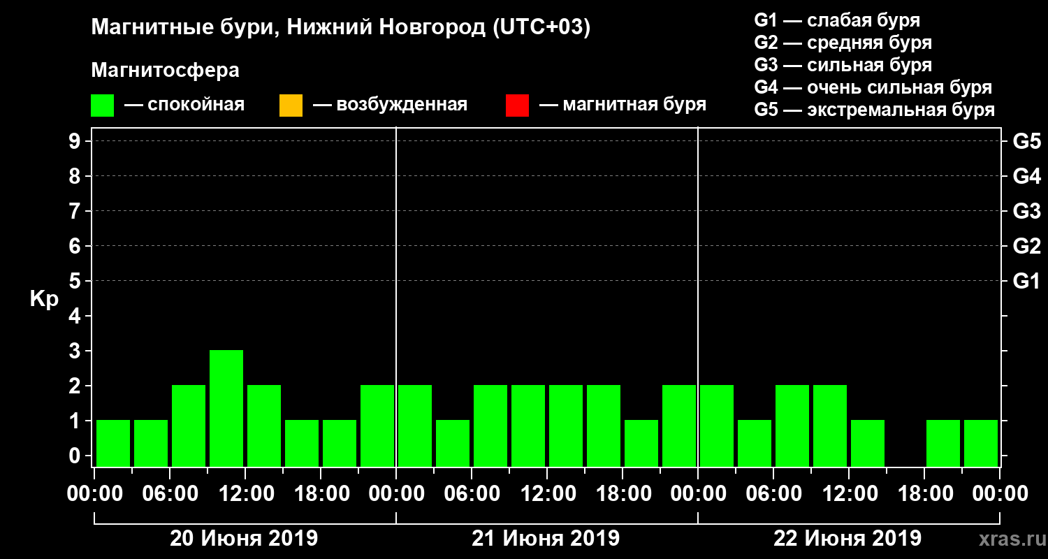 Магнитные бури Нижнем Новгороде 22 июня 2019 года
