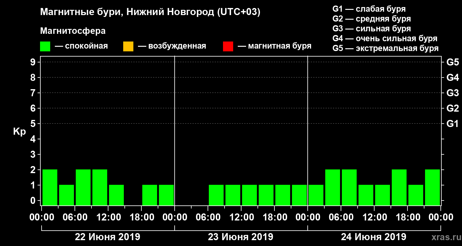 Магнитные бури Нижнем Новгороде 24 июня 2019 года