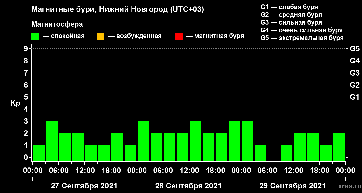 Магнитные бури Нижнем Новгороде 29 сентября 2021 года