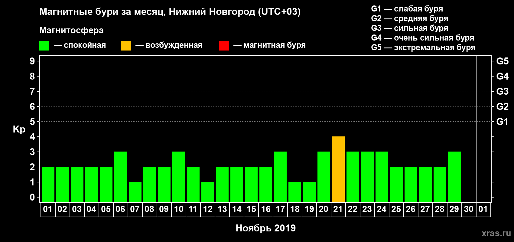 Магнитные бури Нижнем Новгороде в ноябре 2019 года