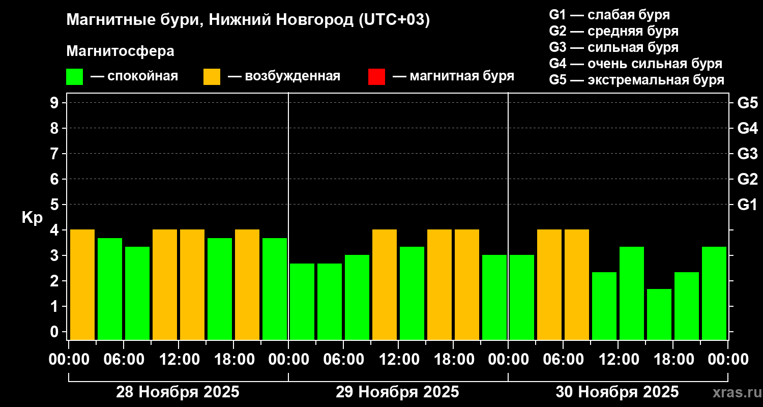 Магнитные бури Нижнем Новгороде 30 ноября 2025 года