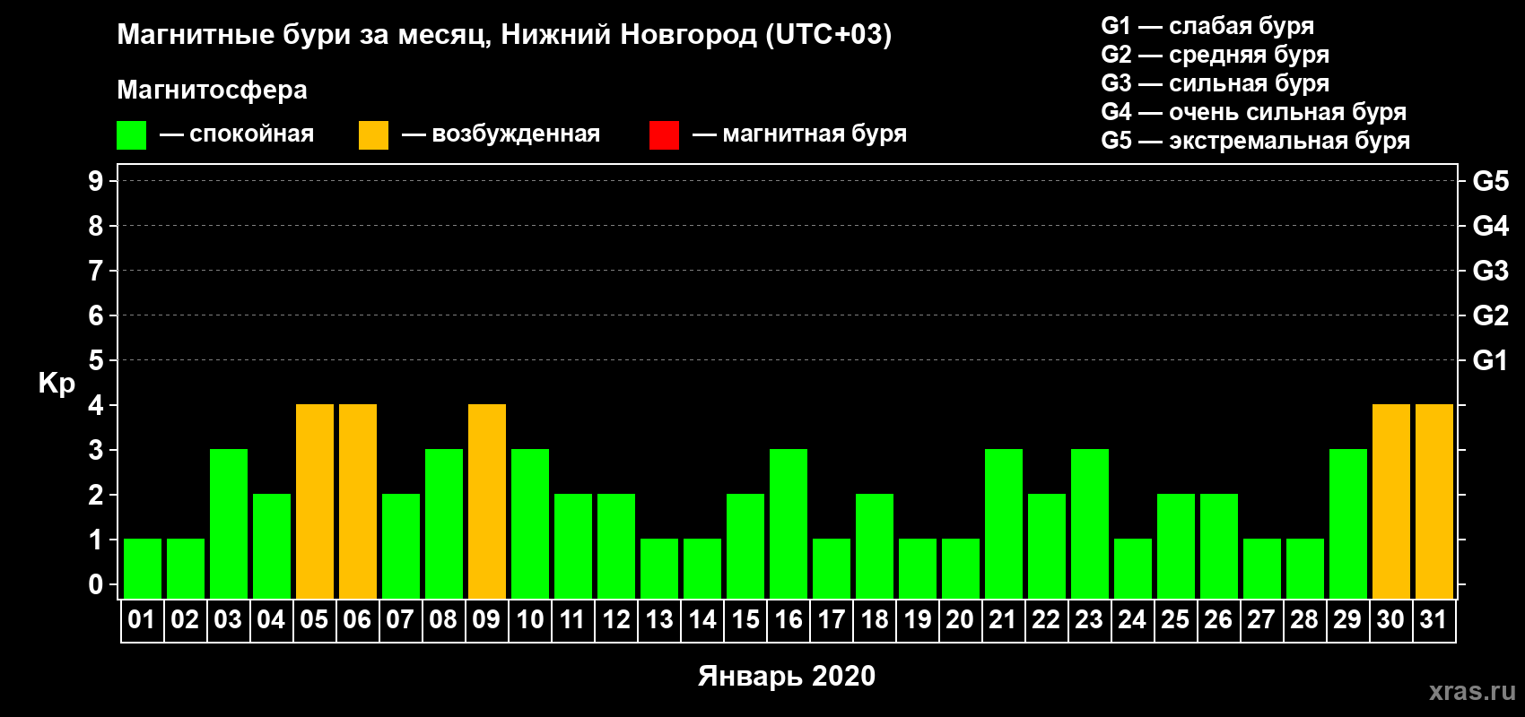 Магнитные бури Нижнем Новгороде — 31 января 2020 года