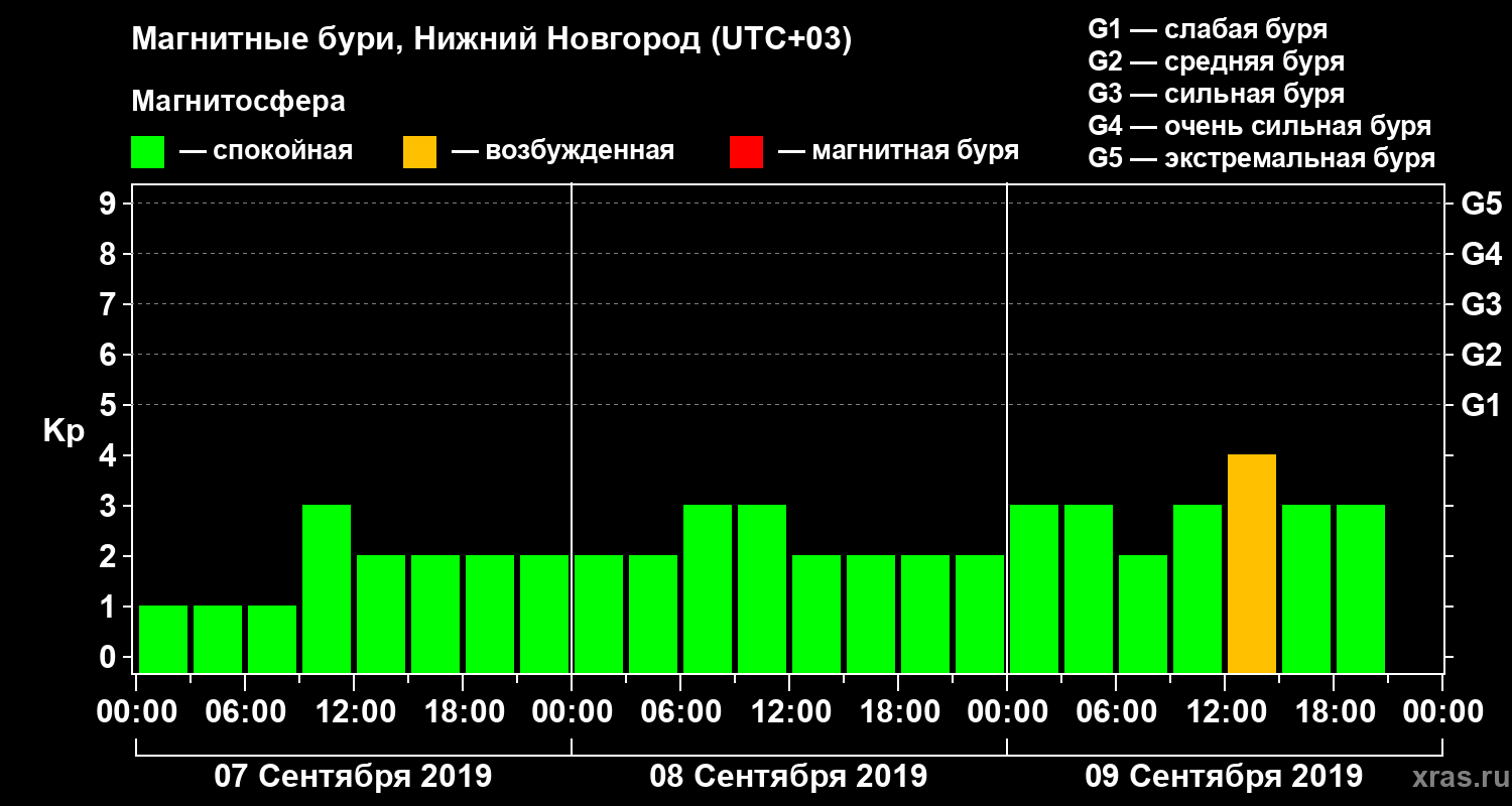 Магнитные бури Нижнем Новгороде — 9 сентября 2019 года