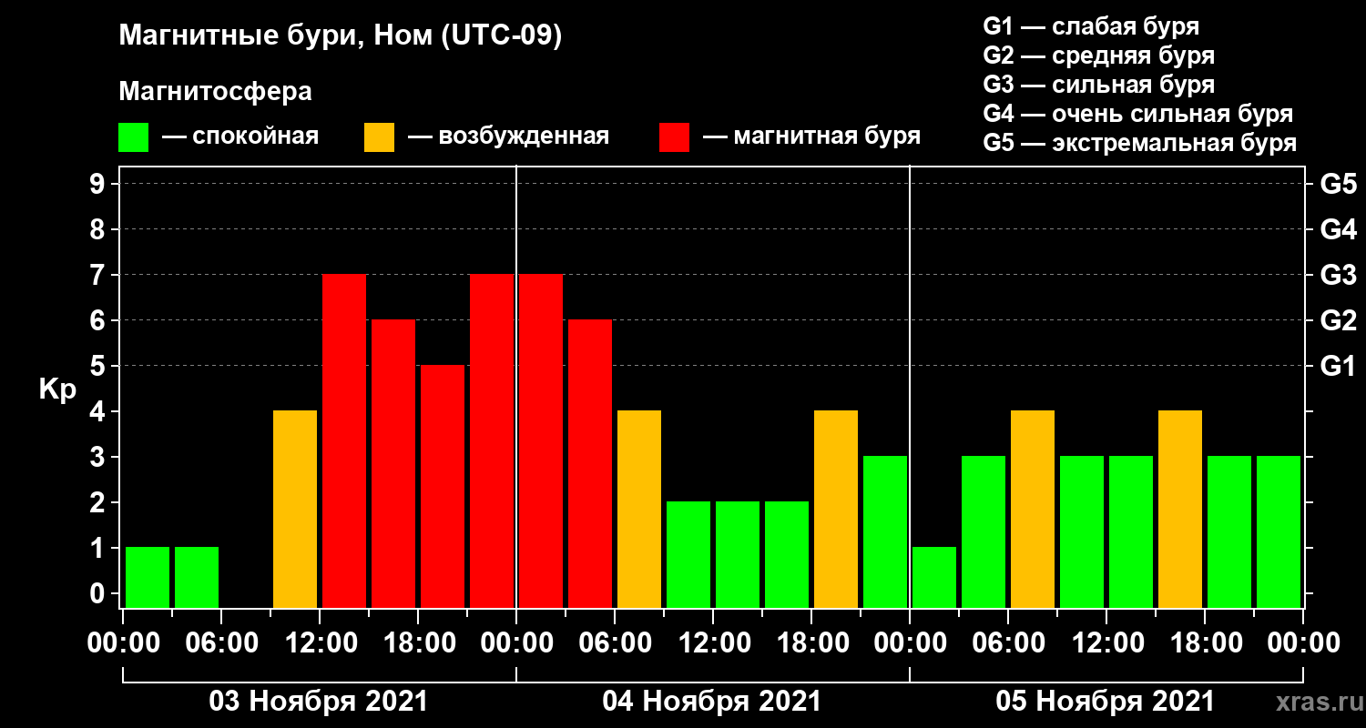 Магнитные бури в Номе 5 ноября 2021 года