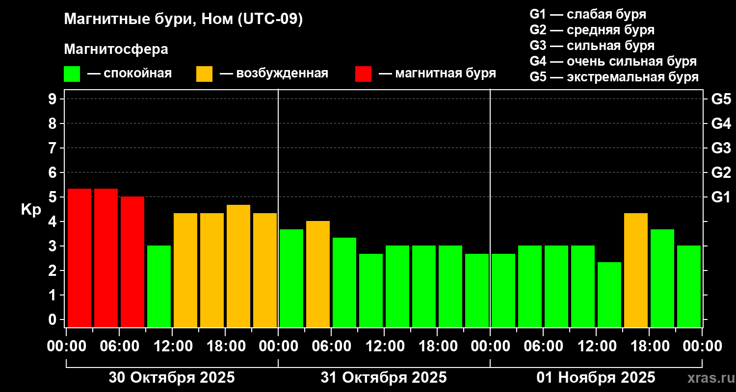 Магнитные бури в Номе 1 ноября 2025 года