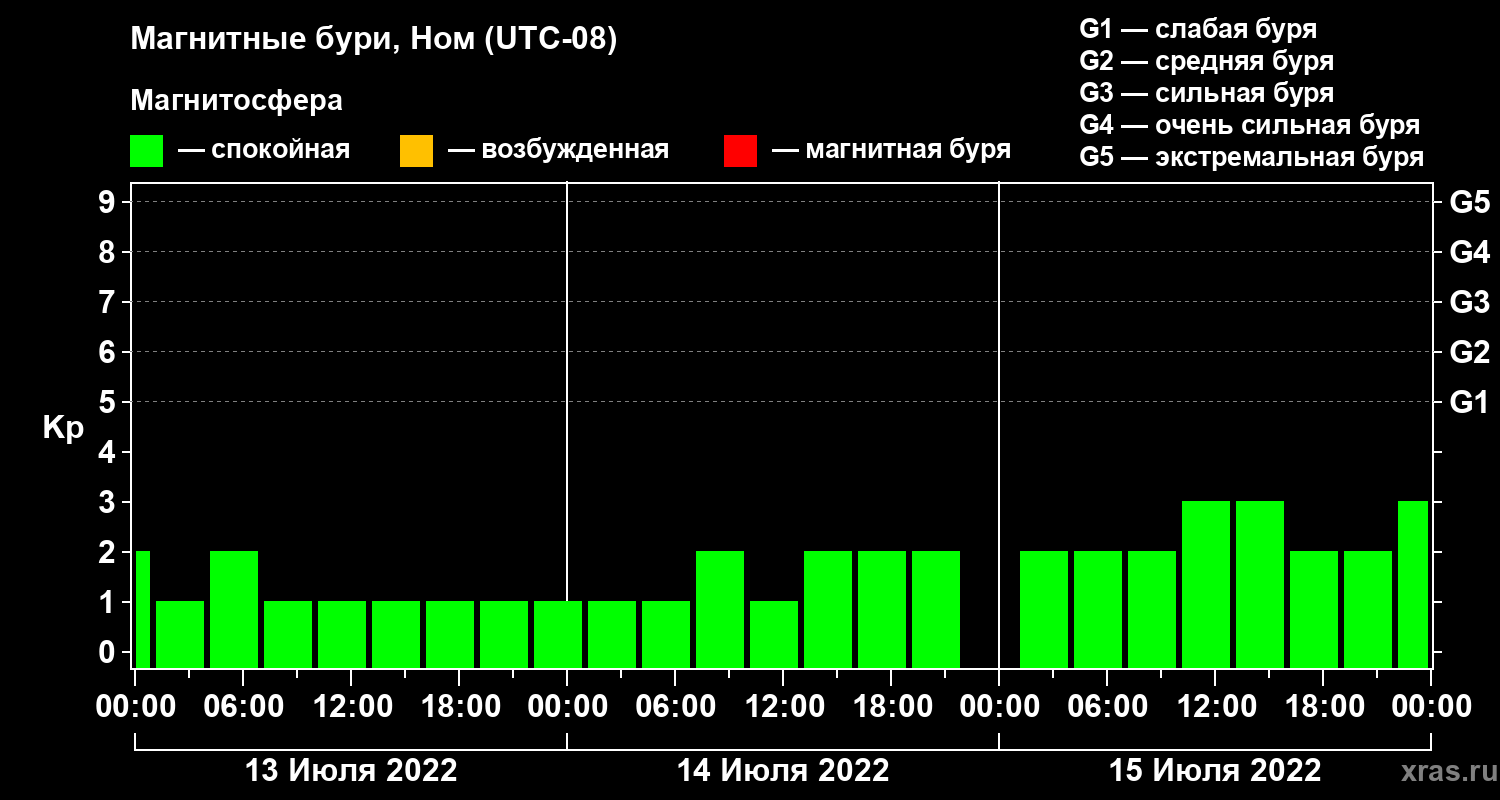 Магнитные бури в Номе 15 июля 2022 года