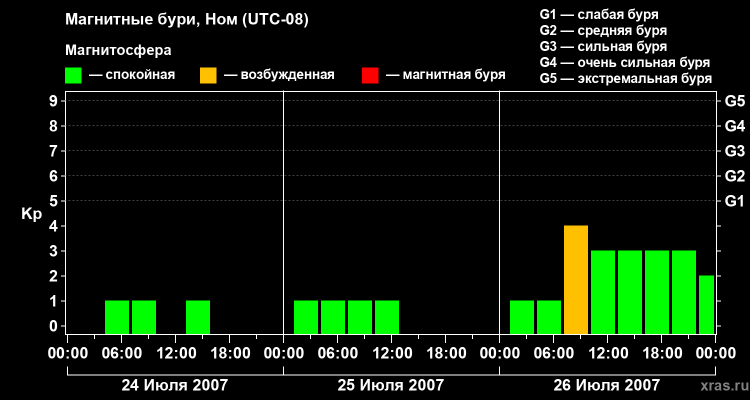 Магнитные бури в Номе — 26 июля 2007 года