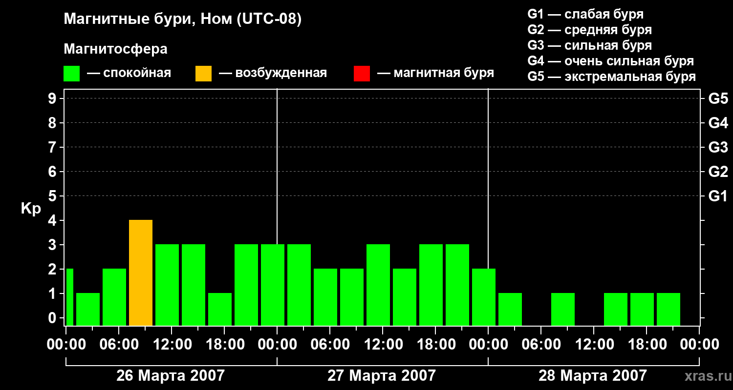 Магнитные бури в Номе — 28 марта 2007 года