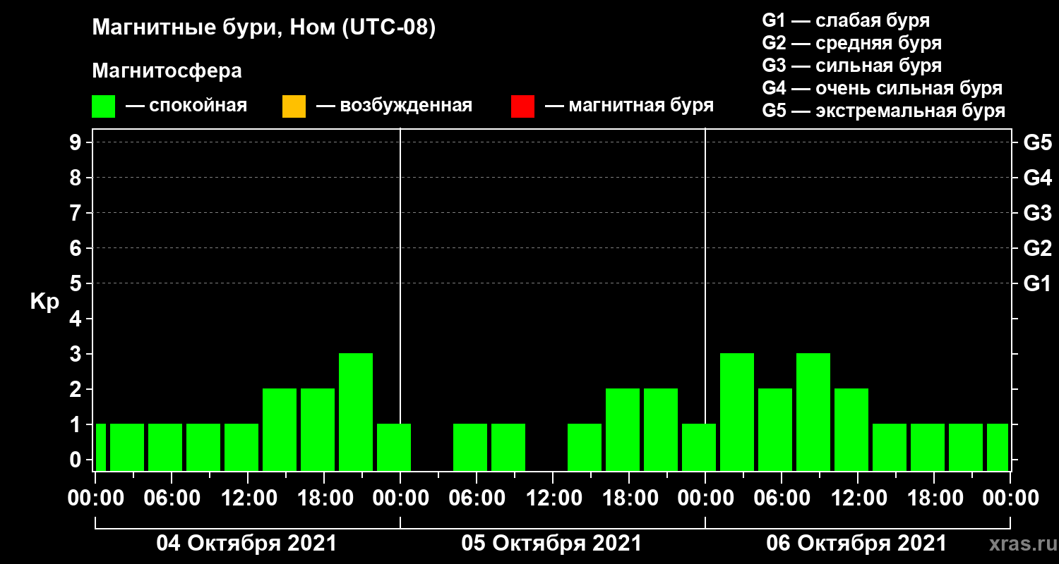 магнитосфера Земли была спокойной (Kp = 3.00)