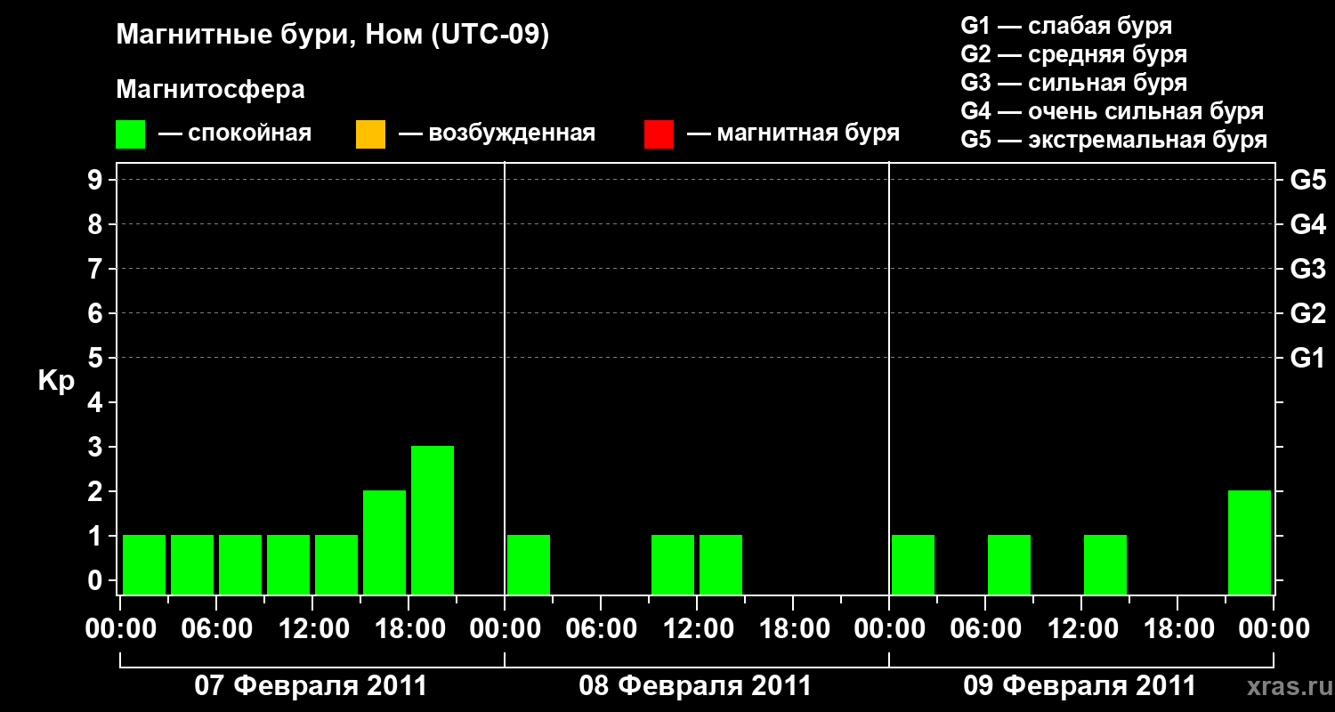 Магнитные бури в Номе 9 февраля 2011 года