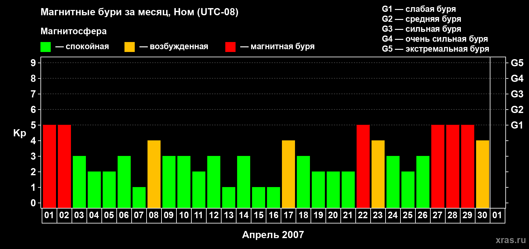 27 апреля 2007 года — Магнитная буря уровня G1
