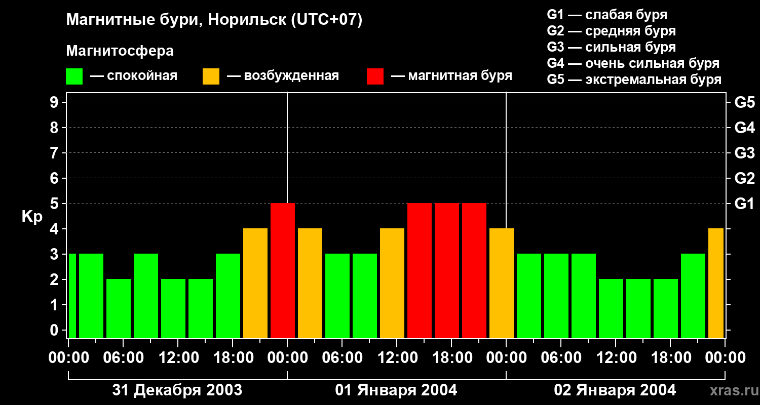 Магнитные бури в Норильске — 2 января 2004 года