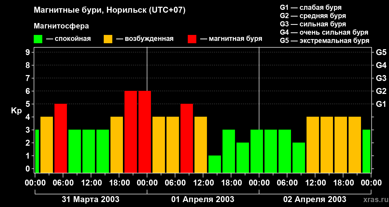 Магнитные бури в Норильске — 2 апреля 2003 года
