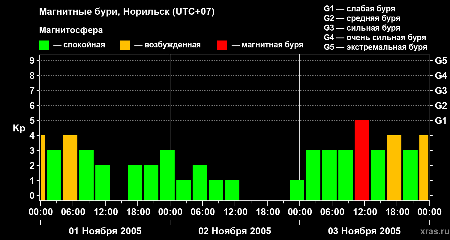 Магнитные бури в Норильске — 3 ноября 2005 года