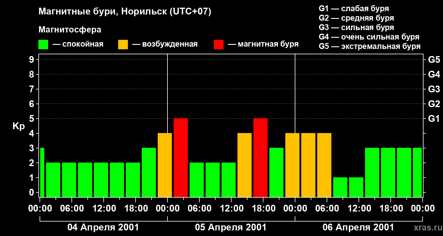 Магнитные бури в Норильске — 6 апреля 2001 года