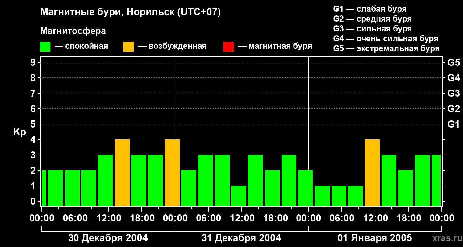 Магнитные бури в Норильске — 1 января 2005 года