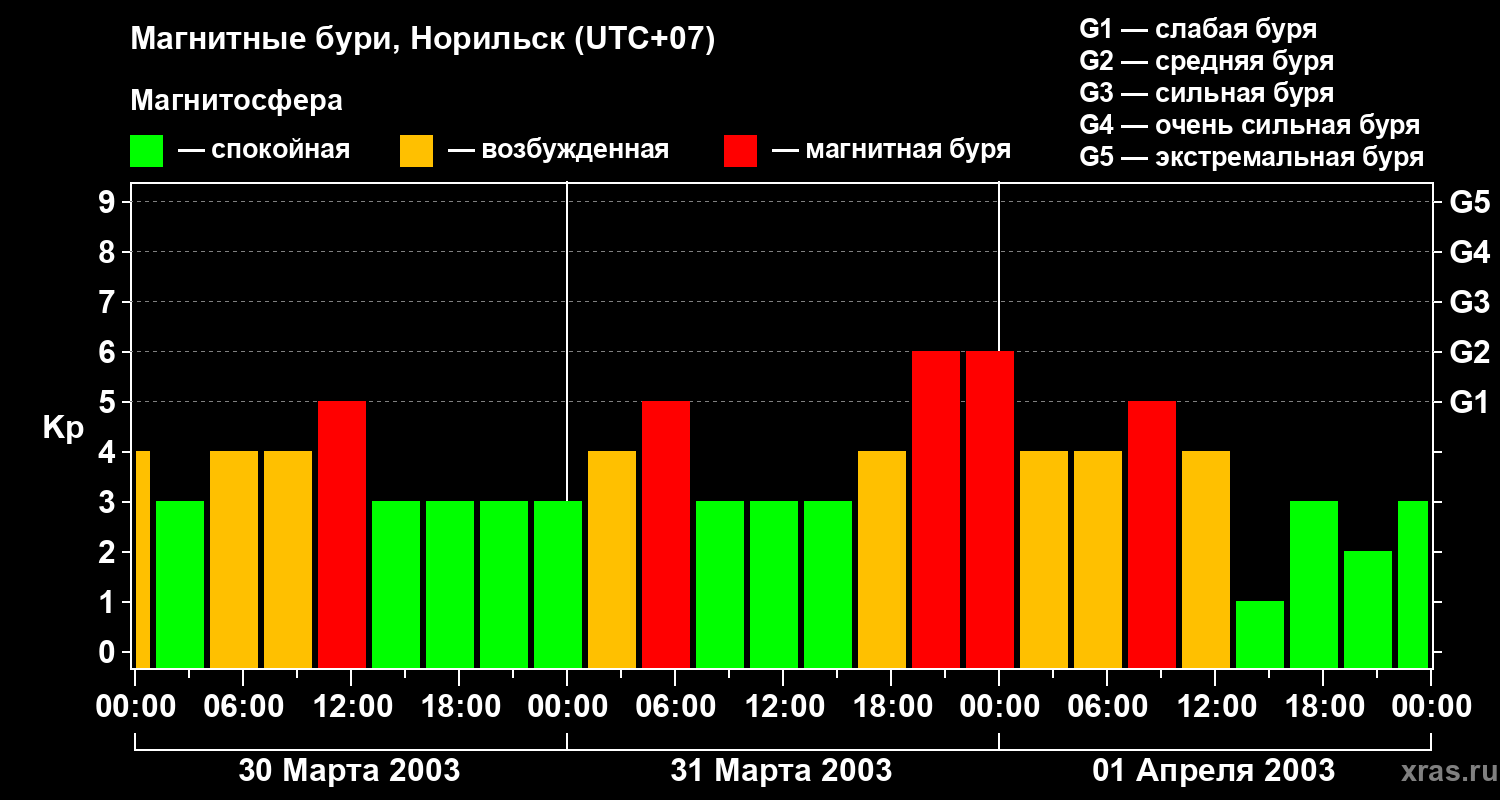 Магнитные бури в Норильске — 1 апреля 2003 года