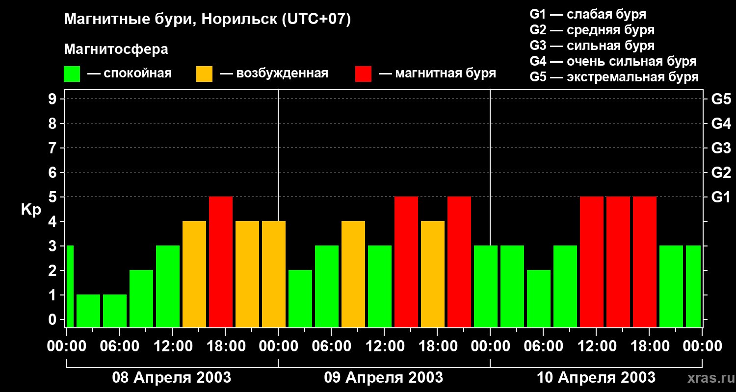 Магнитные бури в Норильске — 10 апреля 2003 года